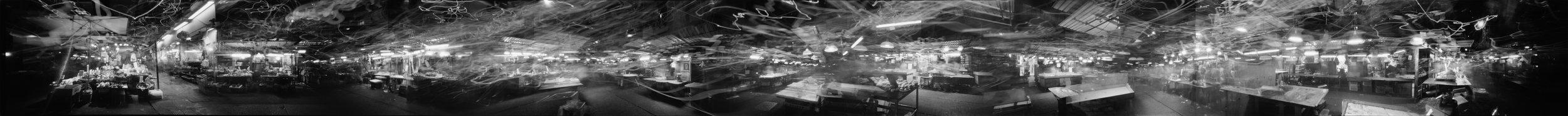 無題(卷軸) Untitled (Handscroll) reinterprets the handscroll format of Chinese paintings through the camera obscura, an optical phenomenon traced to Mozi’s writings. By exposing the entire roll of film without closing the shutter, sequential scenes merge continuously. The process eliminates the photographic borders that define an image, producing a field of view in which spatial and temporal boundaries are dispelled.